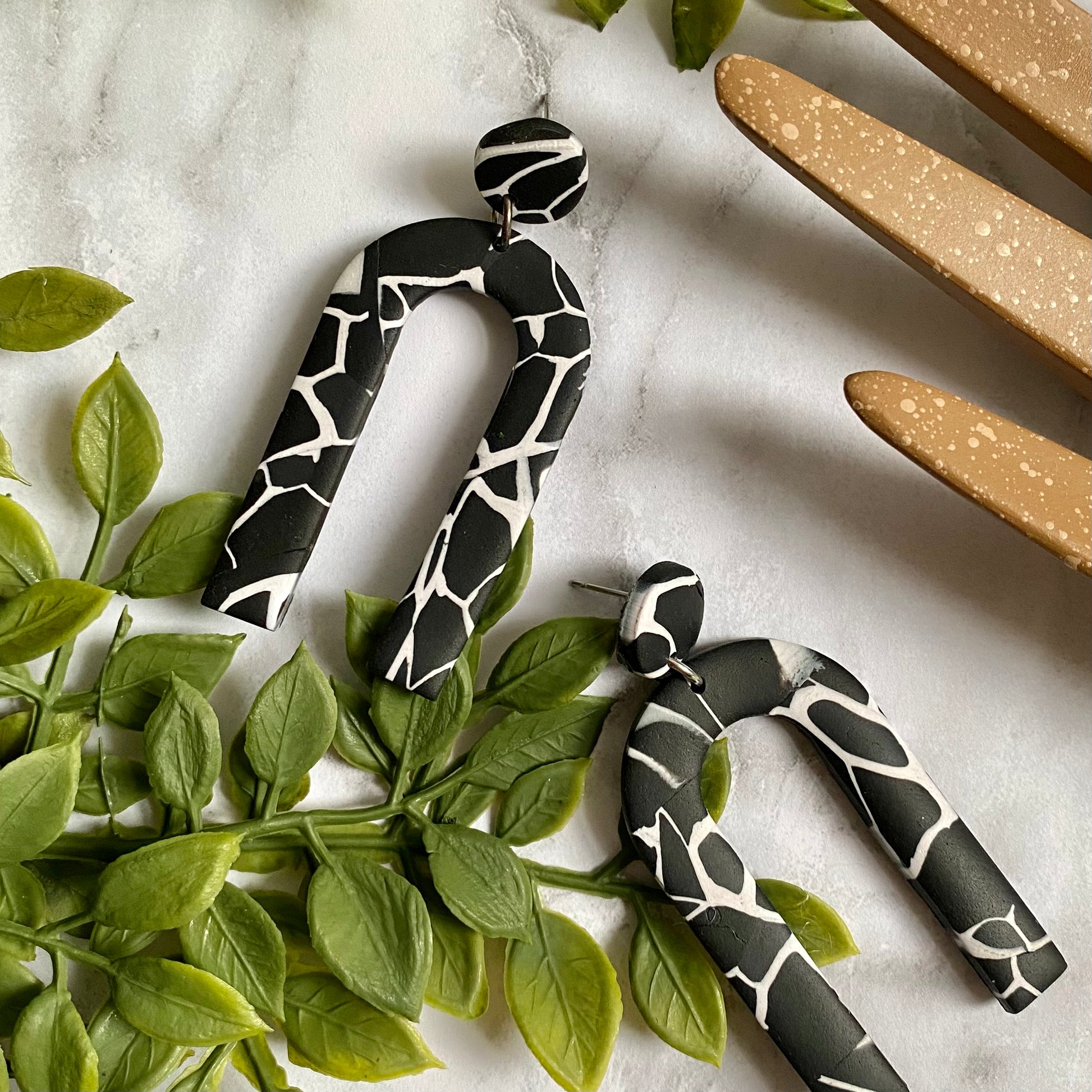 Materials- Polymer Clay, Gold plated jump ring, Gold plated stainless steel post, Silver plated jump ring, Stainless steel post