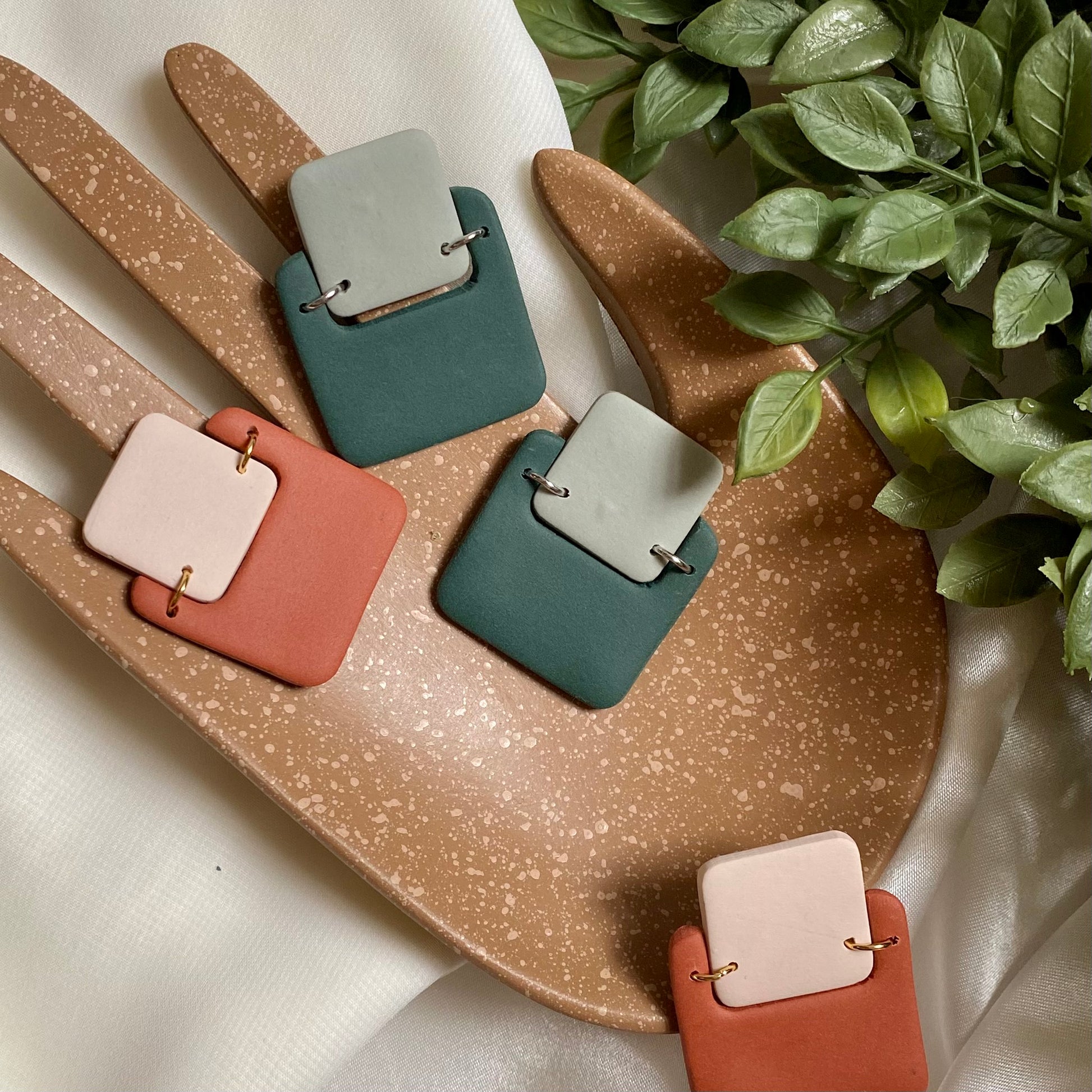 Materials- Polymer clay, UV resin, gold plated stainless steel earring post, stainless steel earring post, gold plated jump ring, silver plated jump ring