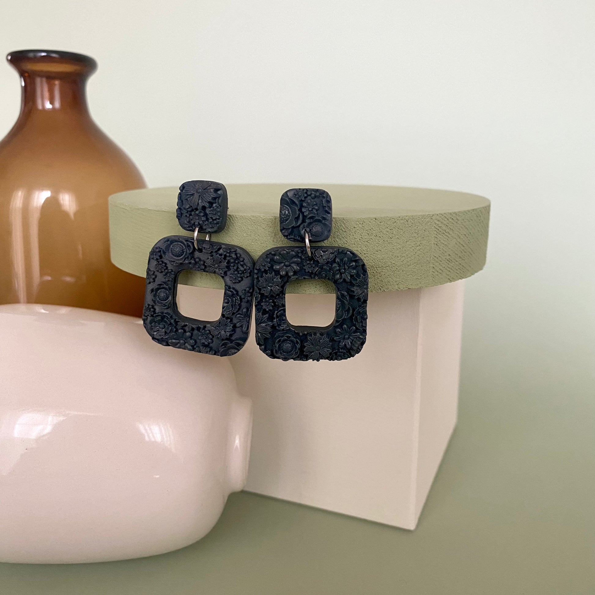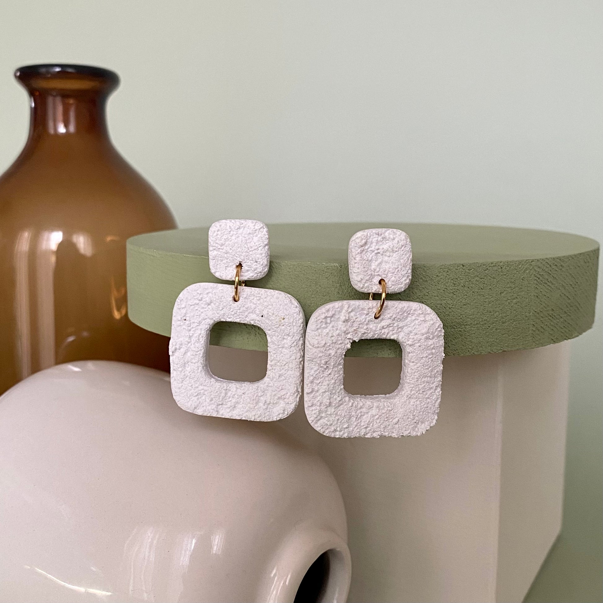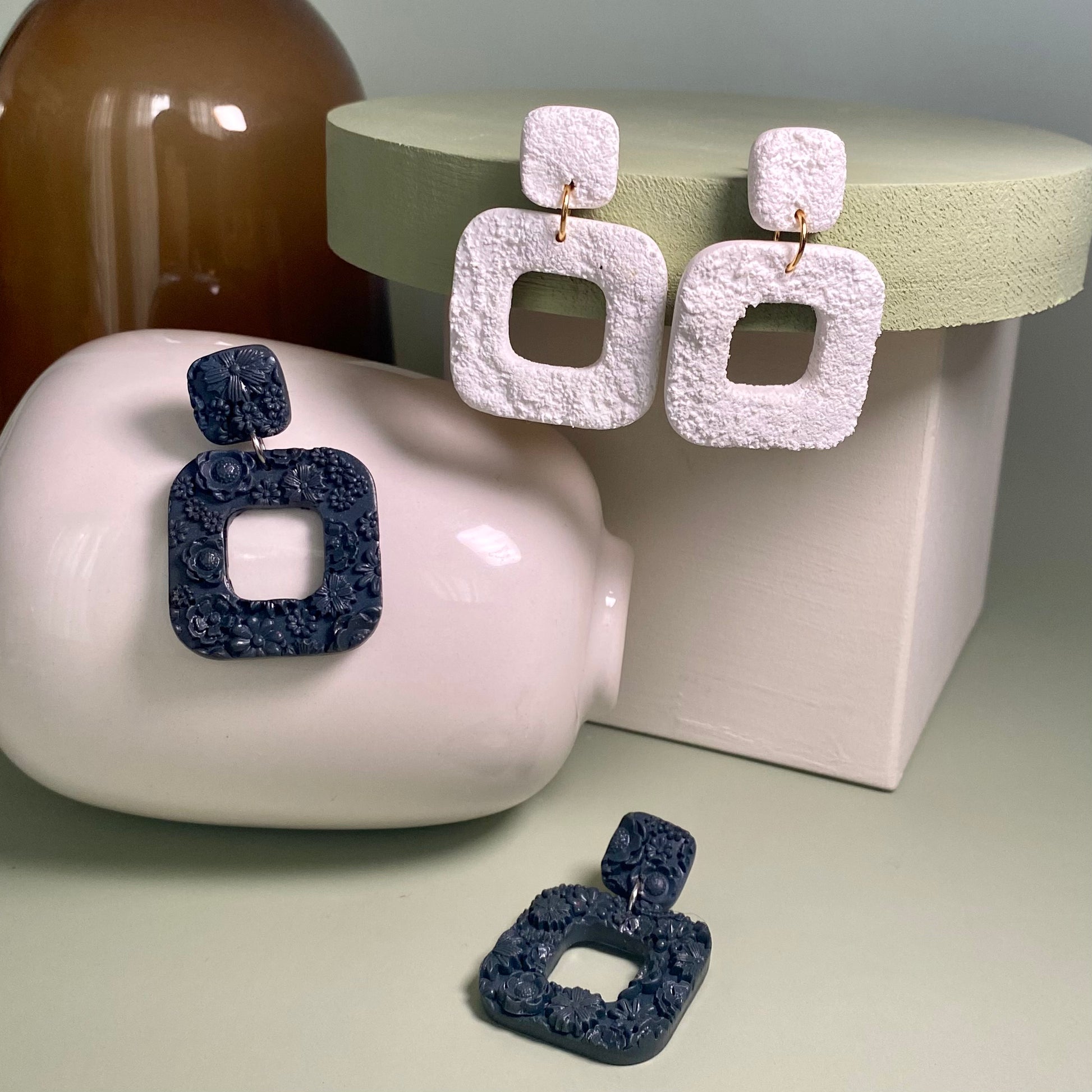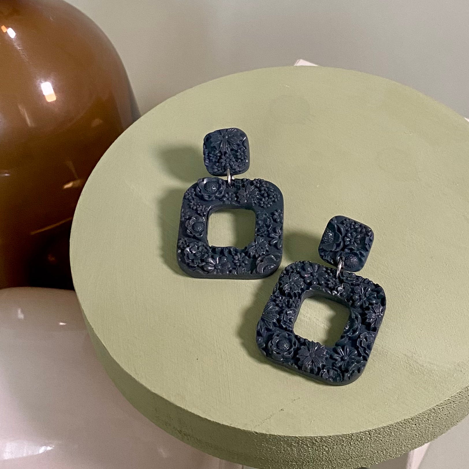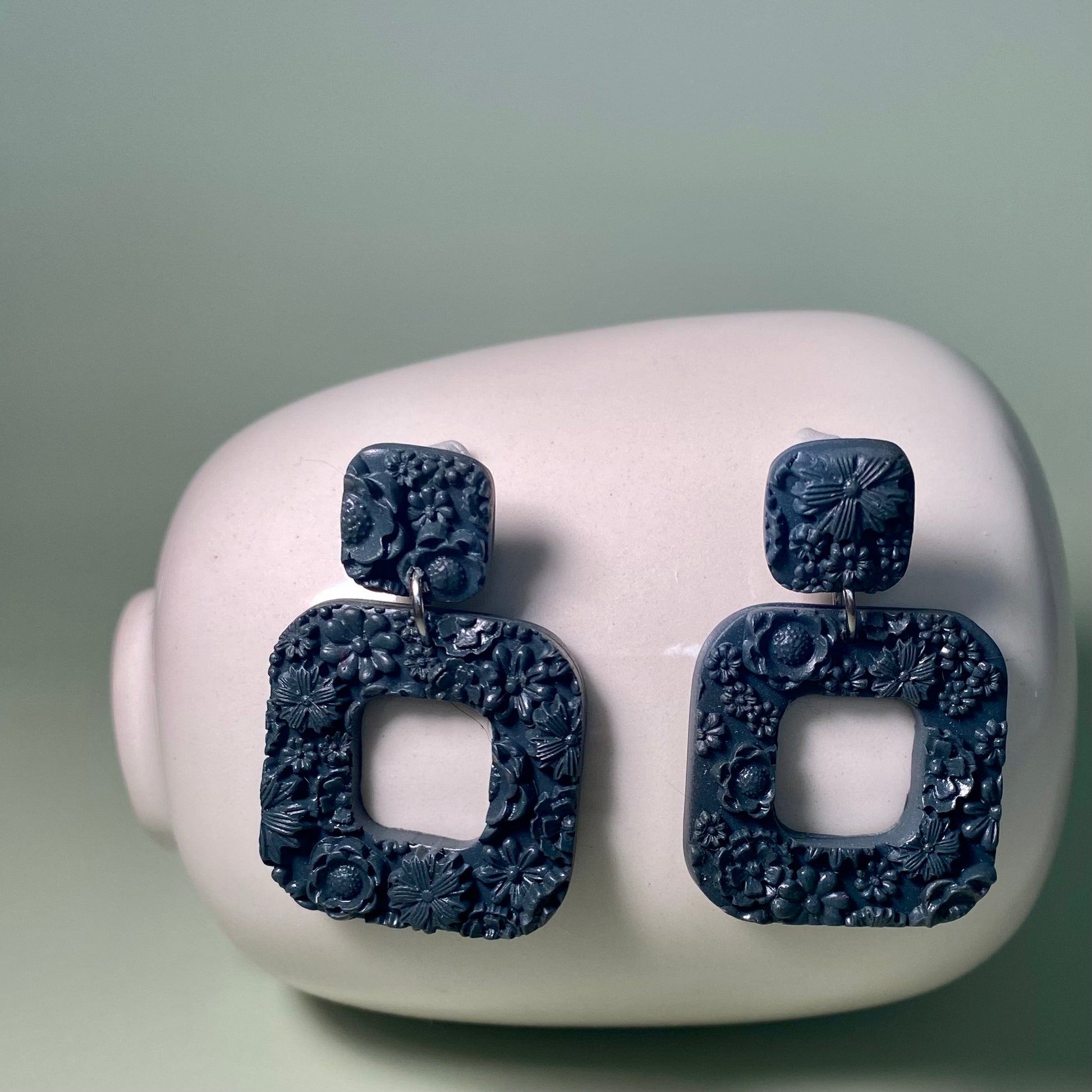 Materials- Polymer clay, resin, silver plated jump ring, silver plated post, gold plated stainless steel post, gold plated stainless steel jump ring
